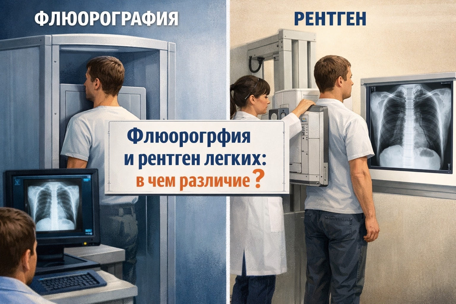 В современной диагностике заболеваний органов грудной клетки два метода остаются наиболее востребованными: флюорография и рентгенография легких. На первый взгляд, они кажутся похожими — оба используют рентгеновское излучение для получения снимка. Однако между ними есть принципиальная разница в диагностической ценности, технике выполнения и области применения.